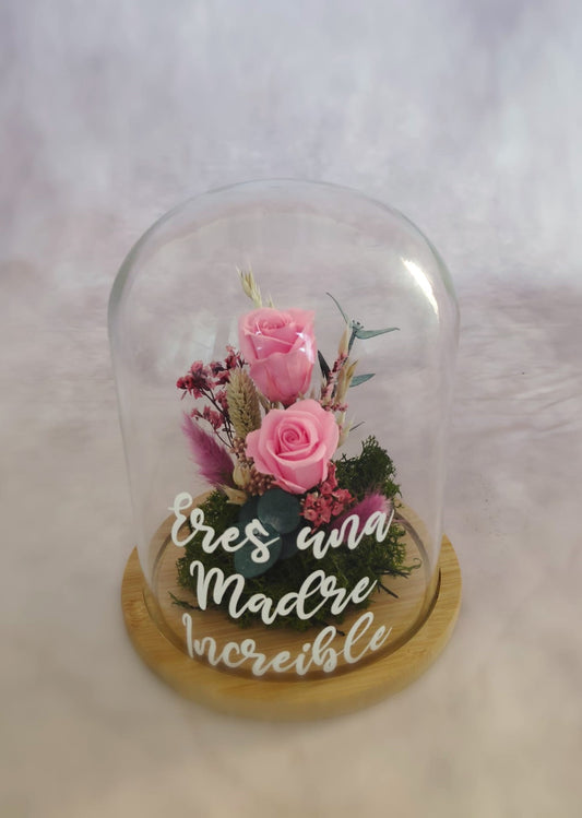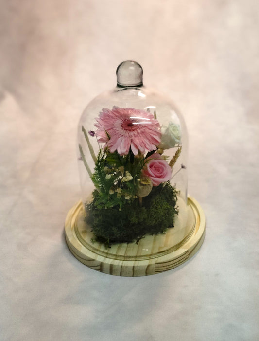 Cúpula de cristal flor preservada; " Encanto floral en cristal "