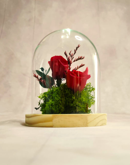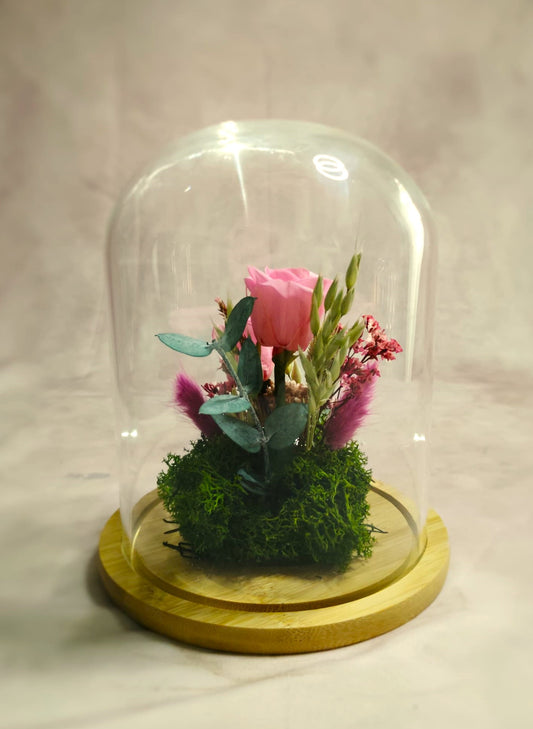 Cúpula de cristal de rosa eterna ; " El susurro del jardin eterno"