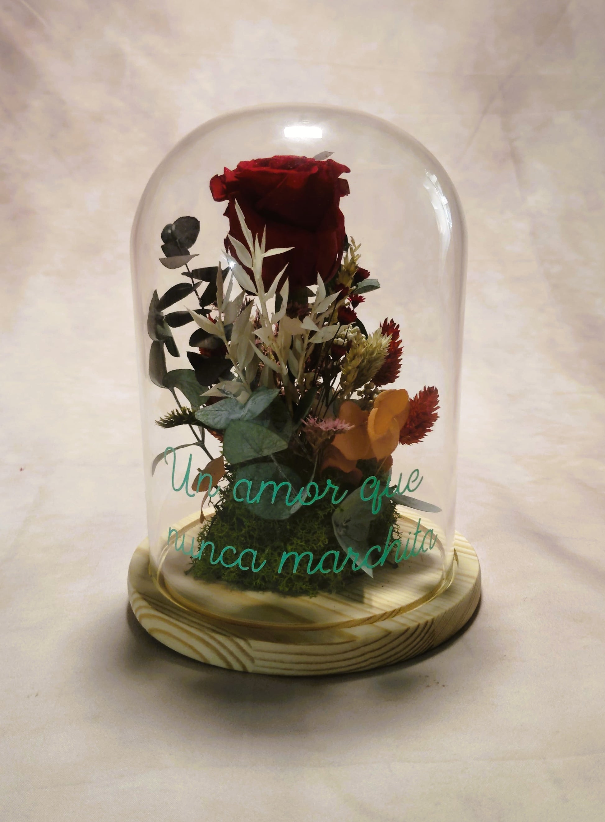 Incluye cúpula de cristal con frase personalizada, perfecto para quienes desean un regalo único, duradero y lleno de significado.