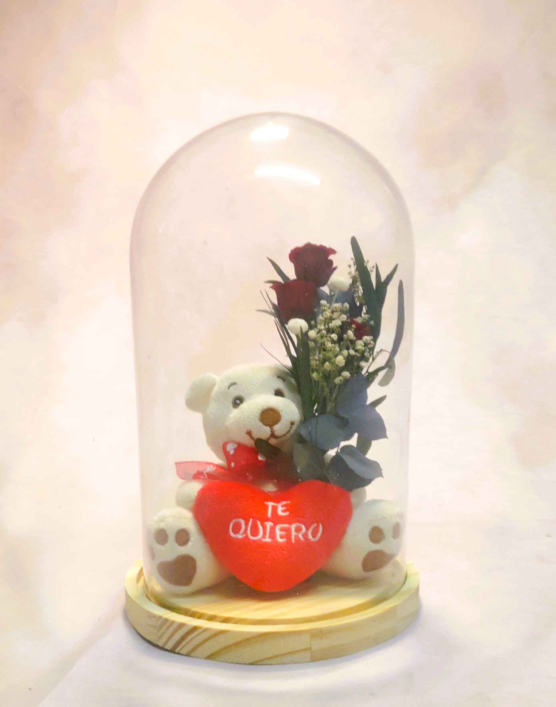 Sorprende a esa persona especial con nuestro encantador osito de peluche con corazón “Te Quiero”, presentado dentro de una elegante cúpula de cristal y acompañado de flores decorativas. Este detalle es perfecto para expresar amor, cariño y gratitud en cualquier ocasión.